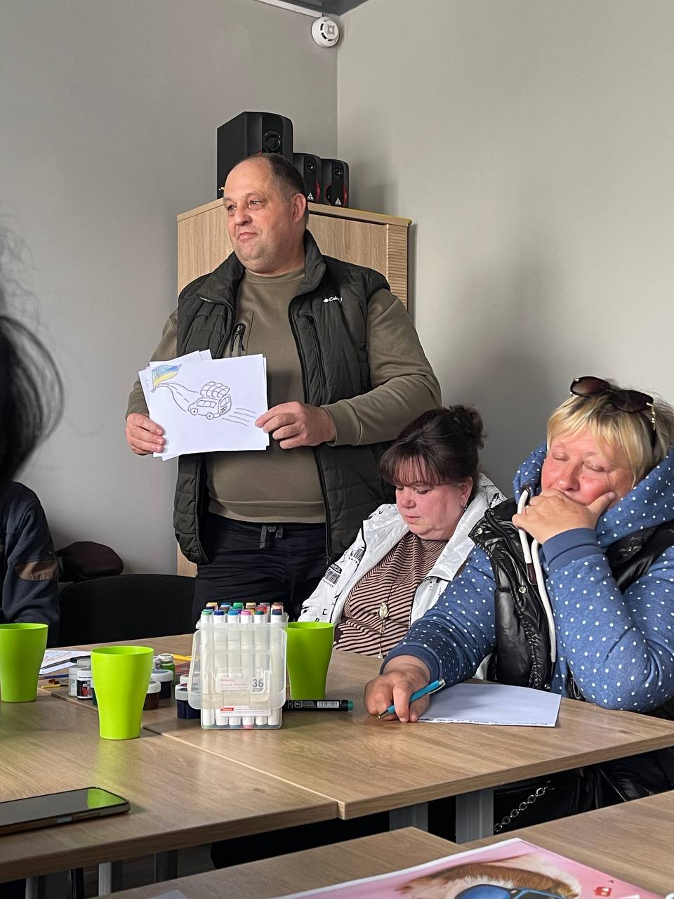 І коли організаторки заходу попросили земляків намалювати чи описати словами на листочках формату А4 свої спогади, емоції й річ, яку забрали з дому – листочки неочікувано довго лишались чистими. І чоловіки, й жінки мовчки згадували й витирали сльози.