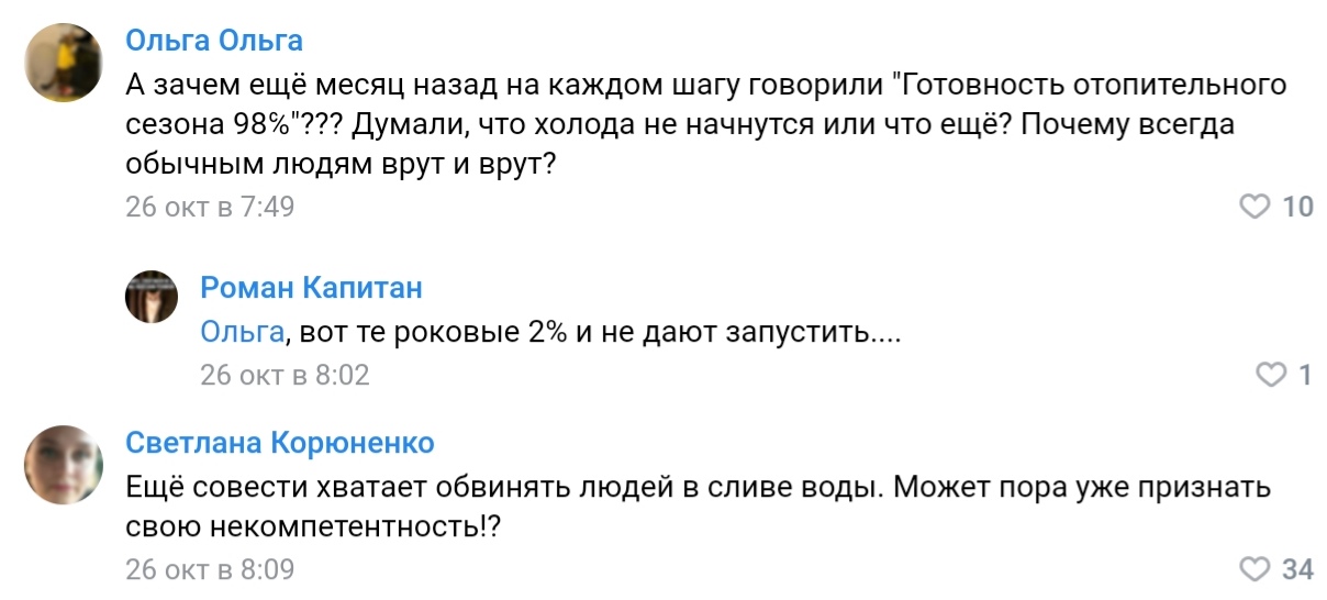 Щоб розділити тягар відповідальності за зрив опалювального сезону, "чиновники" зі сфери ЖКГ стали звинувачувати населення "народної" у безтурботності та нерозсудливості, оскільки ті нібито зливають воду з опалювальної системи. Але в цьому питанні народ складно обдурити, і на дверях під'їздiв з'являються красномовні листування мешканців будинку з "владою".