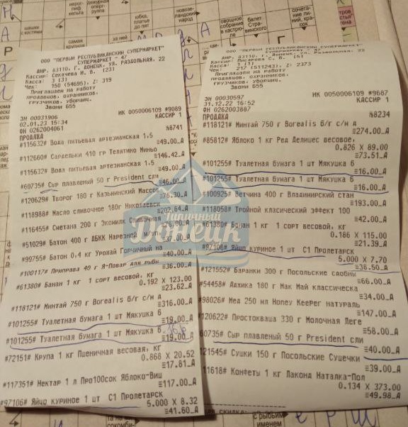 Донеччани викладають у соціальні мережі фото чеків, з яких нескладно побачити, наскільки схуд їхній гаманець за останні кілька днів. Якщо 31 грудня рулон туалетного паперу "М'якушка" коштував 16 рублів, то 2 січня 2023 року вже 19. Сир плавлений ТМ "President" подорожчав за цей період на 6 рублів, а куряче яйце зросло в ціні на 62 копійки.
