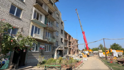 В Авдіївці російські будівельники вже два роки добудовують зруйновані під’їзди до п’ятиповерхового будинку
