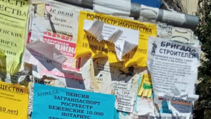 Назад у 90-ті: весь окупований Маріуполь заклеєний паперовими оголошеннями