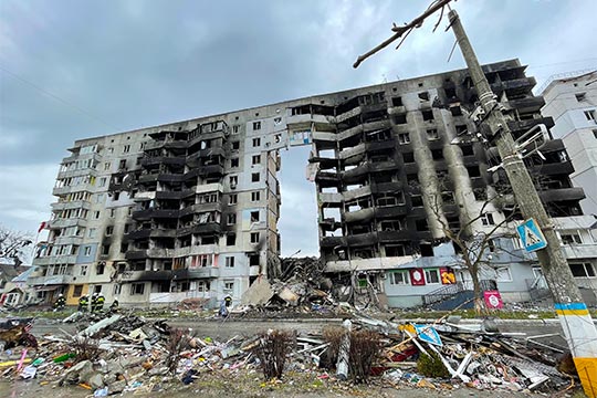 В настоящее время несколько десятков человек с "георгиевскими лентами" продолжают находиться под стенами банка. Они стоят спокойно. У некоторых лица скрыты балаклавами, ряд мужчин – в бронежилетах.