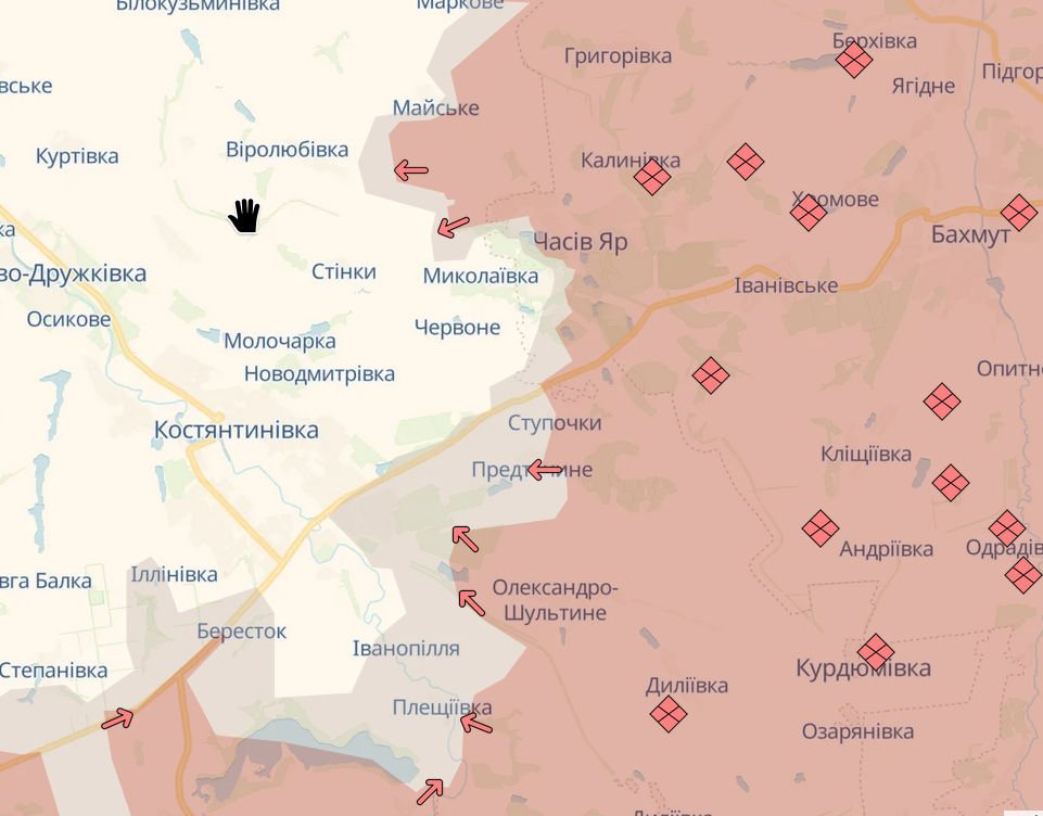 "Ворог просунувся поблизу Піддубного. Уточнено ділянку поблизу Часового Яру", - повідомляє 10 березня OSINT-проєкт DeepState.