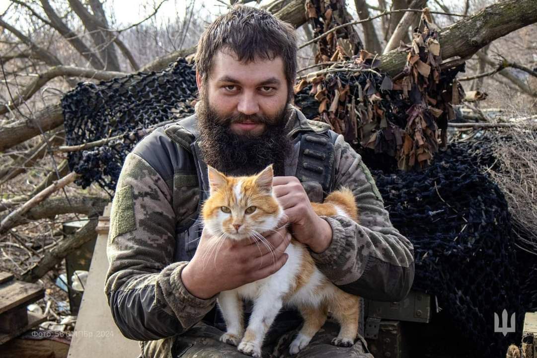 "У кожного на вогневій позиції своя робота: у людей – нищити загарбників, у котиків – зачищати посадку від шкідників. А коли справу зроблено, всі збираються разом посидіти під теплими вже променями сонечка, щоб поспілкуватися та підтримати одне одного", - повідомляє у Телеграм Донецька ОДА. Фото: 56 окрема мотопіхотна Маріупольська бригада.