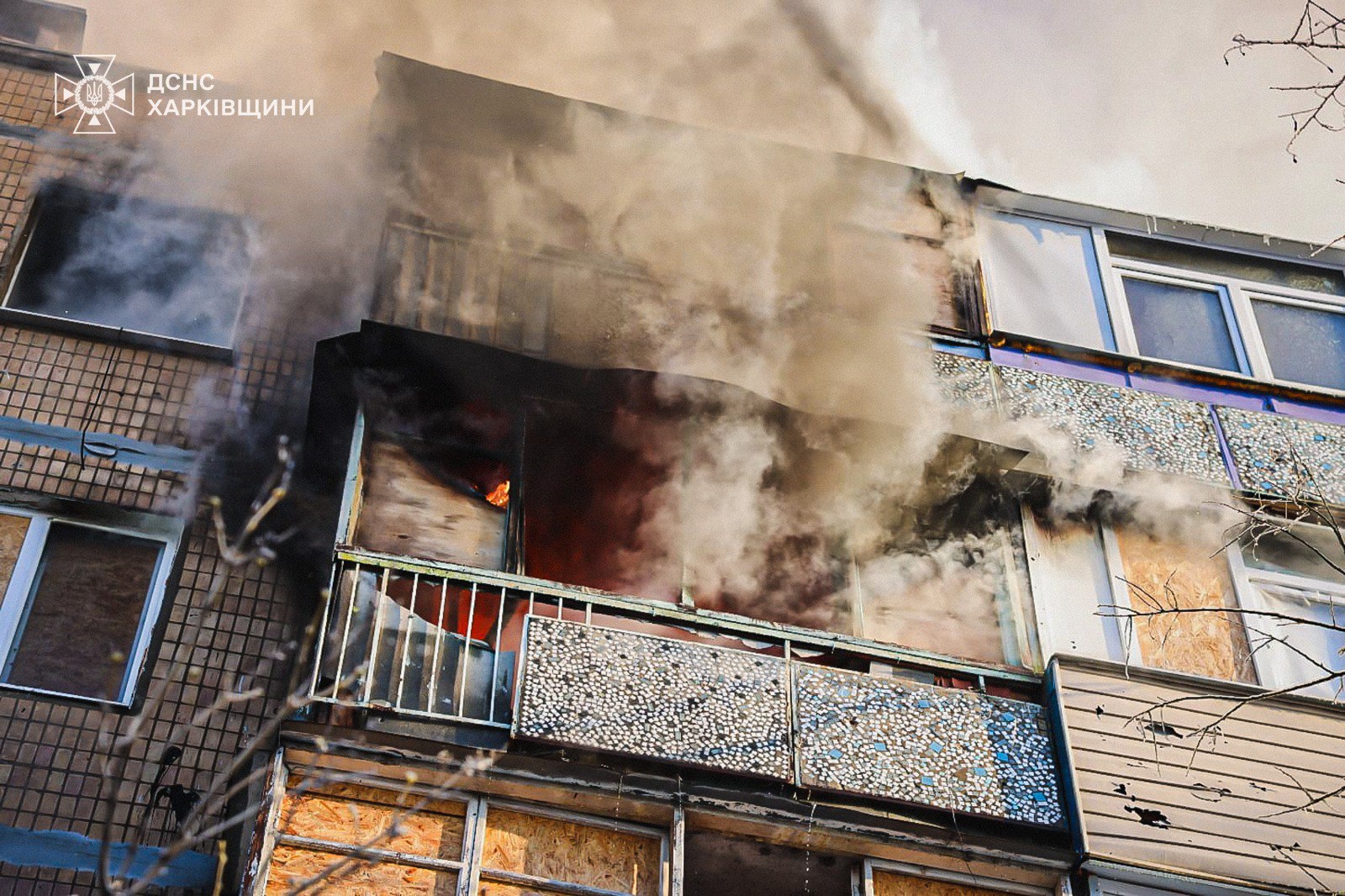 "Внаслідок ворожого удару БпЛА по Салтівському району Харкова спалахнули квартири в житловому багатоповерховому будинку", - повідомляє 3 лютого у Телеграм начальник Харківської ОДА Олег Синєгубов.