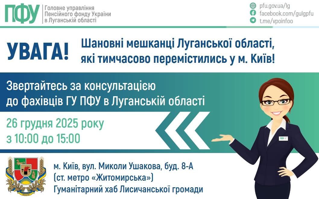 "26 грудня у хабі Лисичанської громади відбудеться прийом внутрішньо переміщених осіб фахівцем ГУ ПФУ в Луганській області", - повыдомила Луганська ОВА в соцмережах 25 грудня.