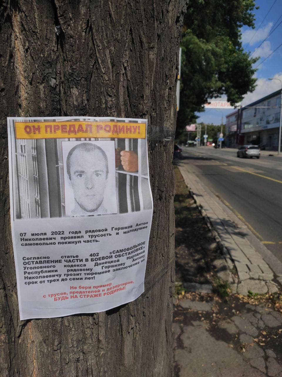 В окупованому Донецьку на стінах будинків і стовпах з'явилися "листівки ганьби" з фотографіями військовослужбовців "народної міліції ДНР" та мобілізованих жителів Донецької області, які дезертували,