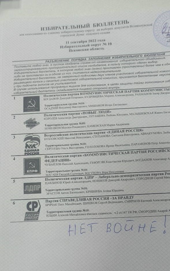 У РФ на бюлетенях для голосування писали "Ні війні", "Слава Україні" та "Україні – мир".