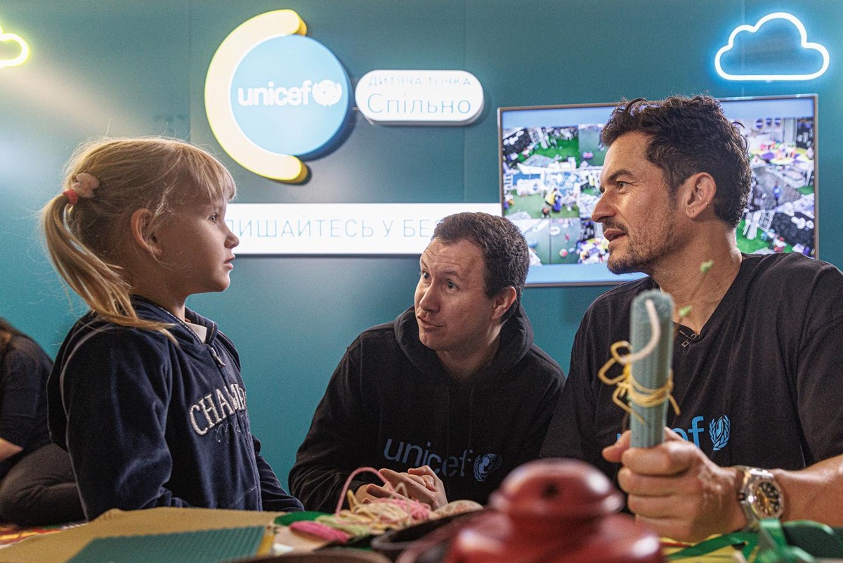 "Сьогодні мені пощастило почути дитячий сміх у центрі "Спільно", який підтримує ЮНІСЕФ, безпечному, теплому та затишному місці, де діти можуть грати, навчатися та отримувати психосоціальну підтримку. "Спільно" українською мовою означає "разом", і таких центрів тут понад 180", - зазначив Орландо Блум.