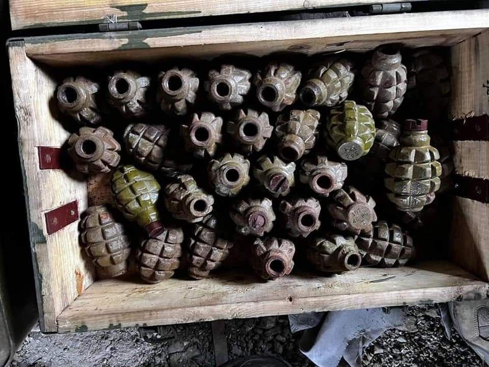 Уточнюється, що загалом правоохоронці виявили 32 гранати Ф1, 20 гранат РГО с запалами, 4 автомати АК та 1 ручний кулемет, 4 цинки патронів калібру 5,45 мм, рпг-22 та реактивну штурмову гранату.