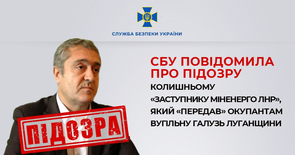 СБУ повідомила про підозру колишньому "заступнику міністра енергетики ЛНР", який "передав" окупантам вугільну галузь Луганщини. Про це повідомляється в Телеграм-каналі відомства 27 січня.