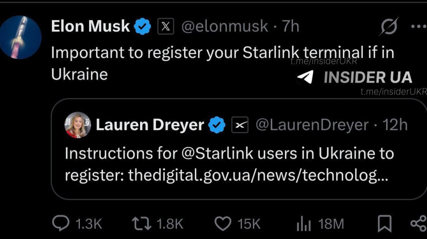 "Цивільним потрібно верифікувати свої Starlink через ЦНАП. Для юросіб уже незабаром буде доступна відповідна послуга на порталі "Дія", - пояснює міністр.