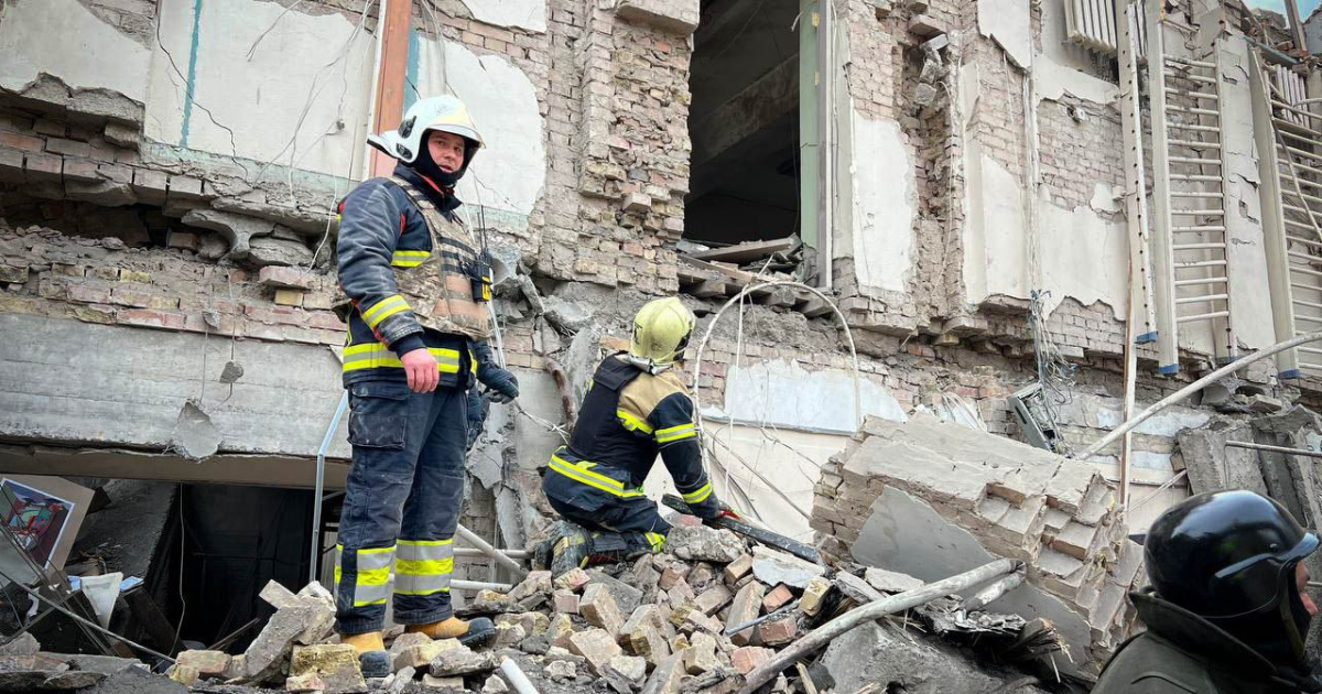 У Києві на місці руйнувань в результаті російских ударів 25 березня тривають аварійно-рятувальні роботи, під завалами можуть бути люди. Про це повідомляє ДСНС України.