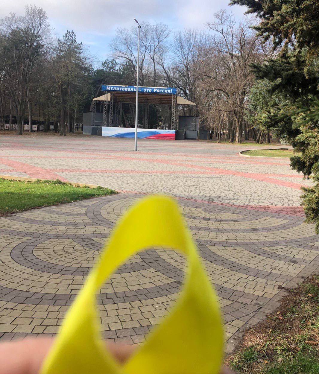 Понад півсотні стрічок, як символів спротиву окупації, розповсюдили активісти руху "Жовта Стрічка" в захопленому російськими військами Мелітополі Запорізької області. Про це рух повідомив 7 грудня у Телеграмі та оприлюднив фото символів у міському парку ім. Горького.