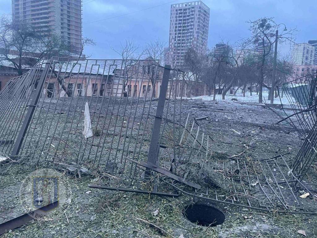 Київська міська військова адміністрація (КМВА) опублікувала фото наслідків російського ракетного удару в Солом'янському районі вранці 23 січня.