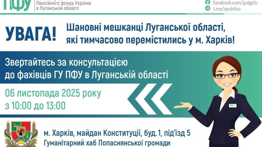 "У понеділок очільниця ПФУ Луганщини прийматиме в Черкасах. 28 квітня у хабі Попаснянської громади відбудеться особистий прийом начальника Головного управління Пенсійного фонду України в Луганській області Ольги Шарунової", - повідомила Луганська ОВА в соцмережах 25 квітня.