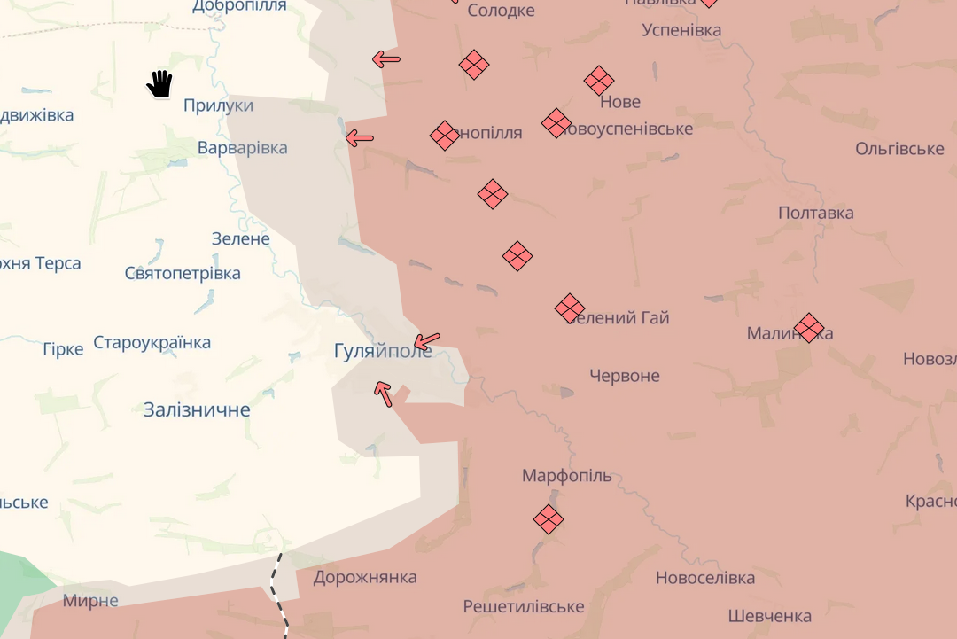 "Ворог просунувся поблизу Дронівки, Різниківки, Новоекономічного та Гуляйполя", - повідомляє 21 грудня OSINT-проєкт DeepState.