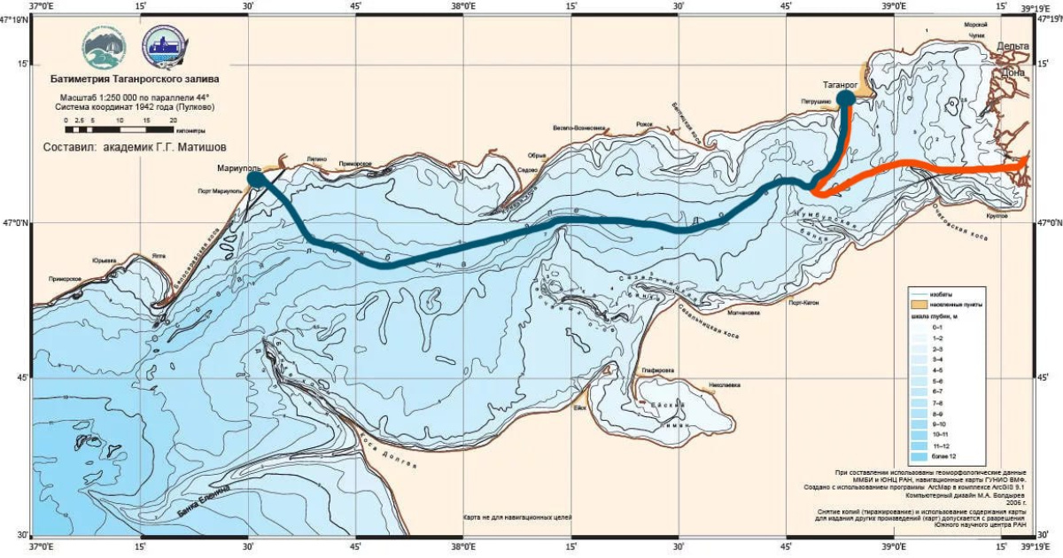 При обговоренні перспектив морських перевезень було сказано, що як базовий варіант розглядається маршрут протяжністю близько 230 кілометрів, який з'єднає Ростов, Таганрог і Маріуполь.