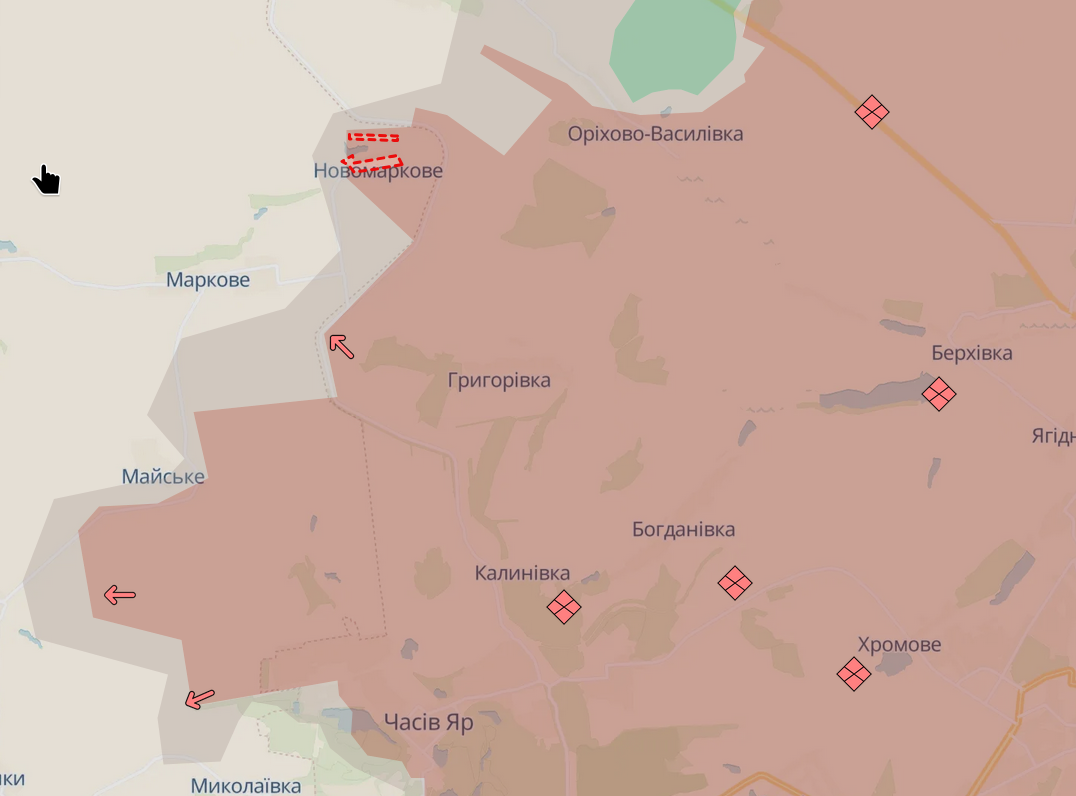"Ворог окупував Андріївку та Новомаркове а також просунувся поблизу Майського", - повідомив в ніч на 8 січня Deep State.