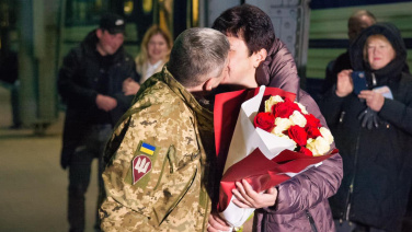 У Львові залізничник-військовослужбовець освідчився коханій на вокзалі після повернення з фронту