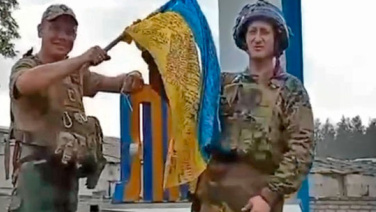 Українські захисники розгорнули прапор України на в'їзді до Лимана (ВІДЕО)