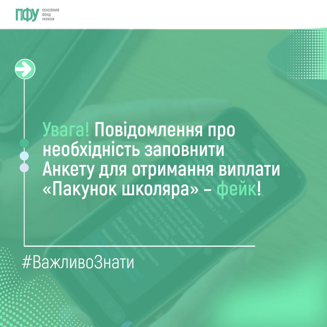 "У месенджері Viber, зокрема в деяких батьківських чатах та групах освітніх закладів, поширюється недостовірна інформація про алгоритм отримання виплати за програмою підтримки «Пакунок школяра». Увага! – це маніпуляція! Вона спонукає довірливих користувачів перейти за посиланням, яке скеровує людину на підозрілі інформаційні та фішингові ресурси", - повідомляє 9 жовтня Пенсійний фонд України. "Щоб не стати жертвами аферистів, закликаємо користувачів соцмереж/месенджерів: у жодному разі не переходьте за подібними посиланнями. Користуйтесь інформацією лише з перевірених джерел", - закликає ПФУ.
