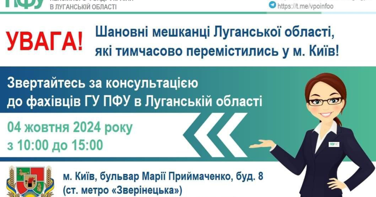 "4 жовтня відбудеться прийом внутрішньо переміщених осіб з Луганської області представником ГУ ПФУ в Луганській області", - сказано в повідомленні.