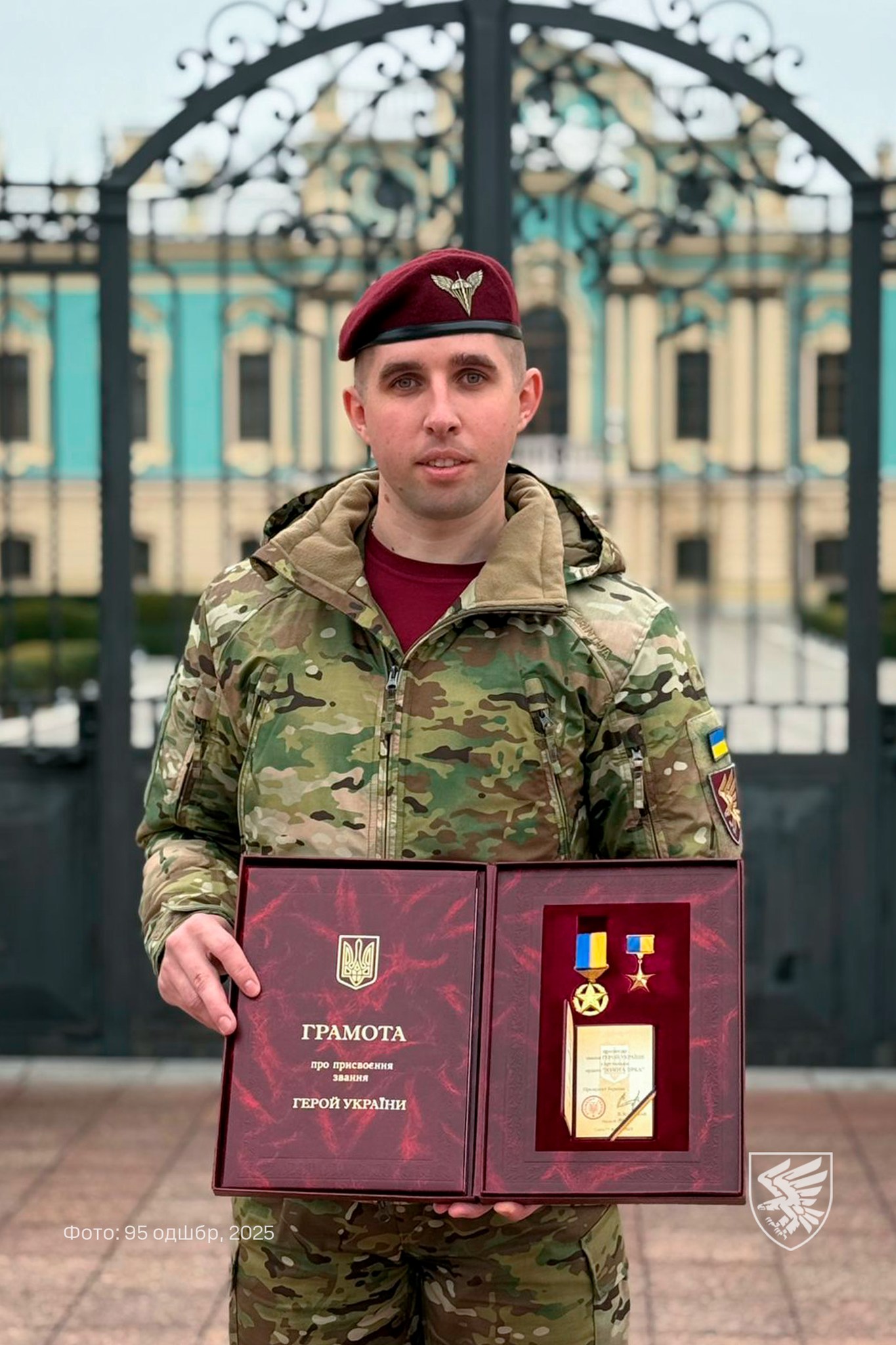 "Президент України Володимир Зеленський присвоїв звання Героя України з врученням ордена «Золота Зірка» заступнику командира 95 бригади ДШВ підполковнику Костянтину Ревуцькому", - повідомляє 95 окрема десантно-штурмова Поліська бригада ДШВ ЗСУ 9 листопада. Це найвища державна нагорода України. Її присуджують громадянам за здійснення визначного геройського вчинку.