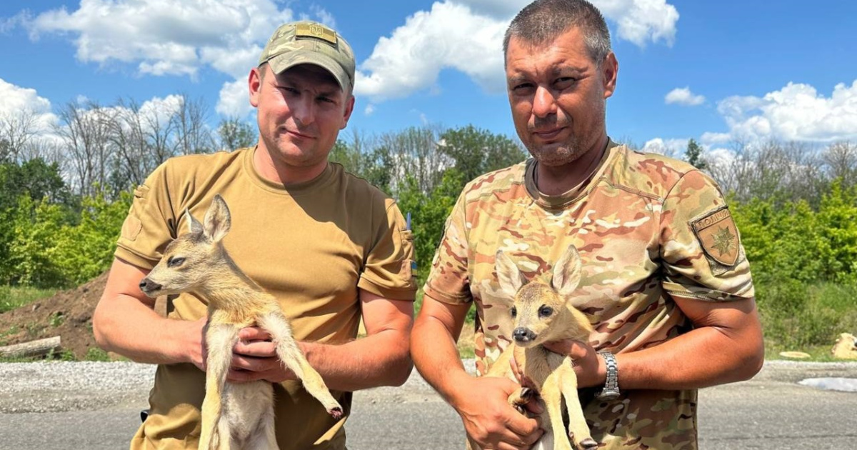 "Сьогодні, 9 червня, до одного з блокпостів Купʼянського району, де несуть службу поліцейські Харківщини разом з колегами з Луганщини, чоловік привіз коробку з двома маленькими косулями. Одна з косуль з пораненими задніми лапками, інша здорова".