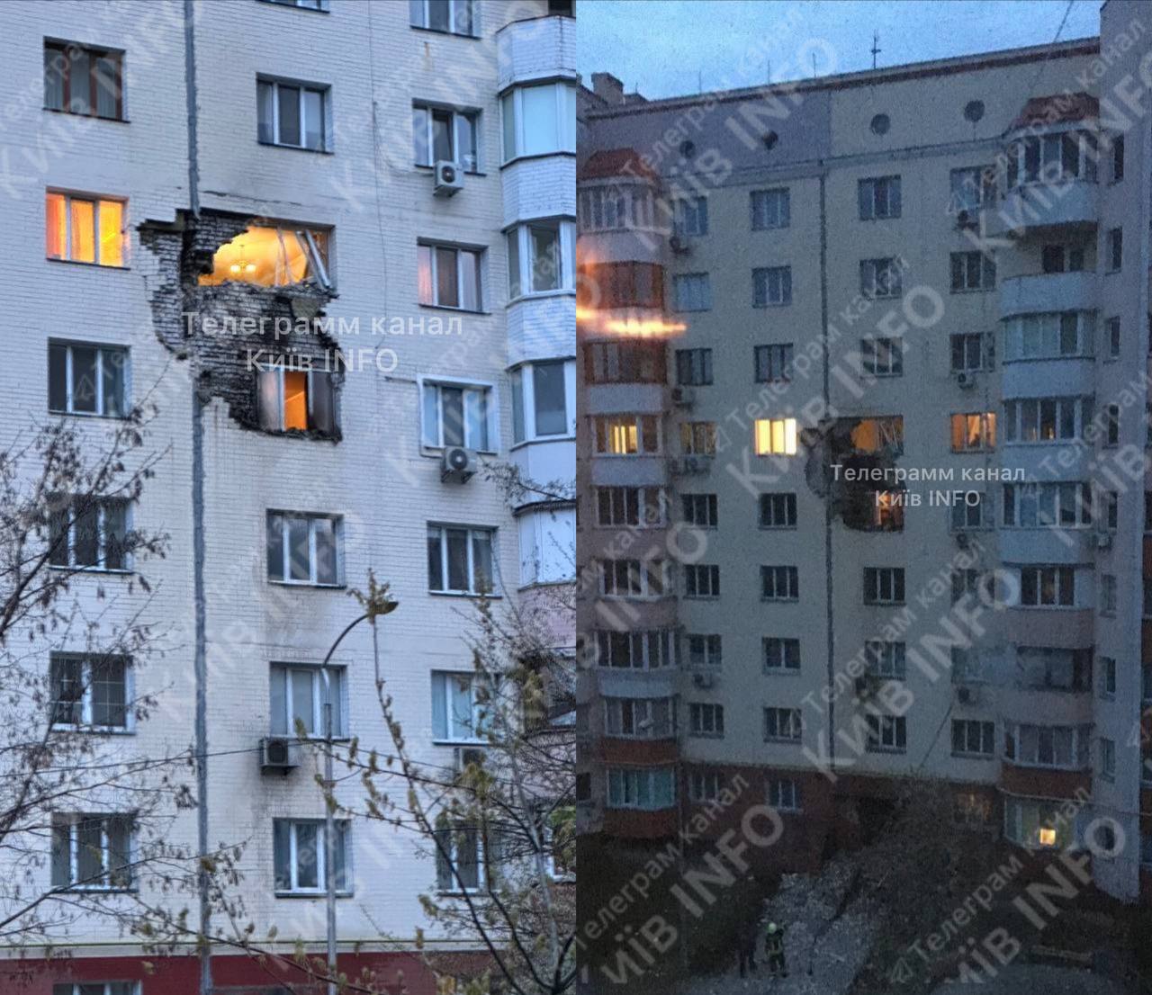 Попередньо, внаслідок падіння уламків, в Оболонському районі столиці перебито локальну лінію електромереж та пошкоджено дорожнє покриття.