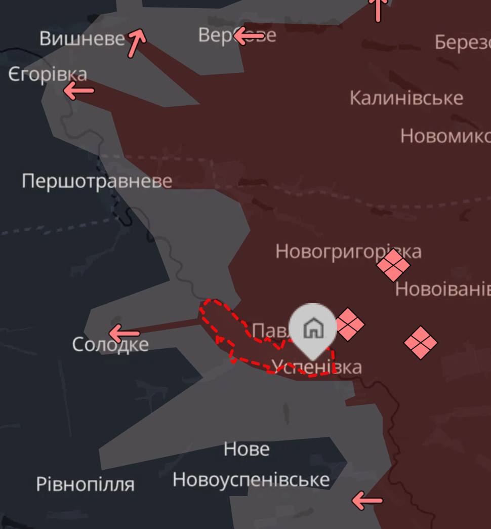 "Мапу оновлено. Ворог окупував Успенівку, а також просунувся поблизу Степової Новоселівки , Злагоди , Солодкого та Охотничого", - повідомив аналітичний проект DeepState 9 листопада.