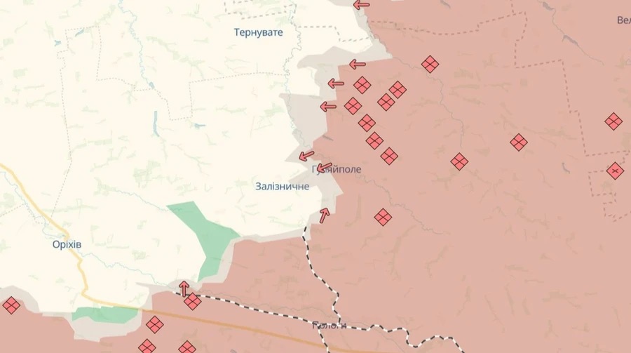 "Ворог окупував Красногірське, а також просунувся у Гуляйполі, поблизу Привільного та Залізнянського", - про це повідомляє Deepstate.