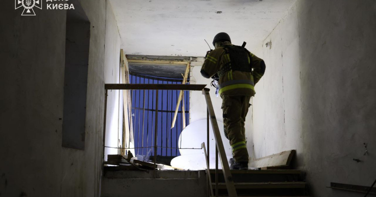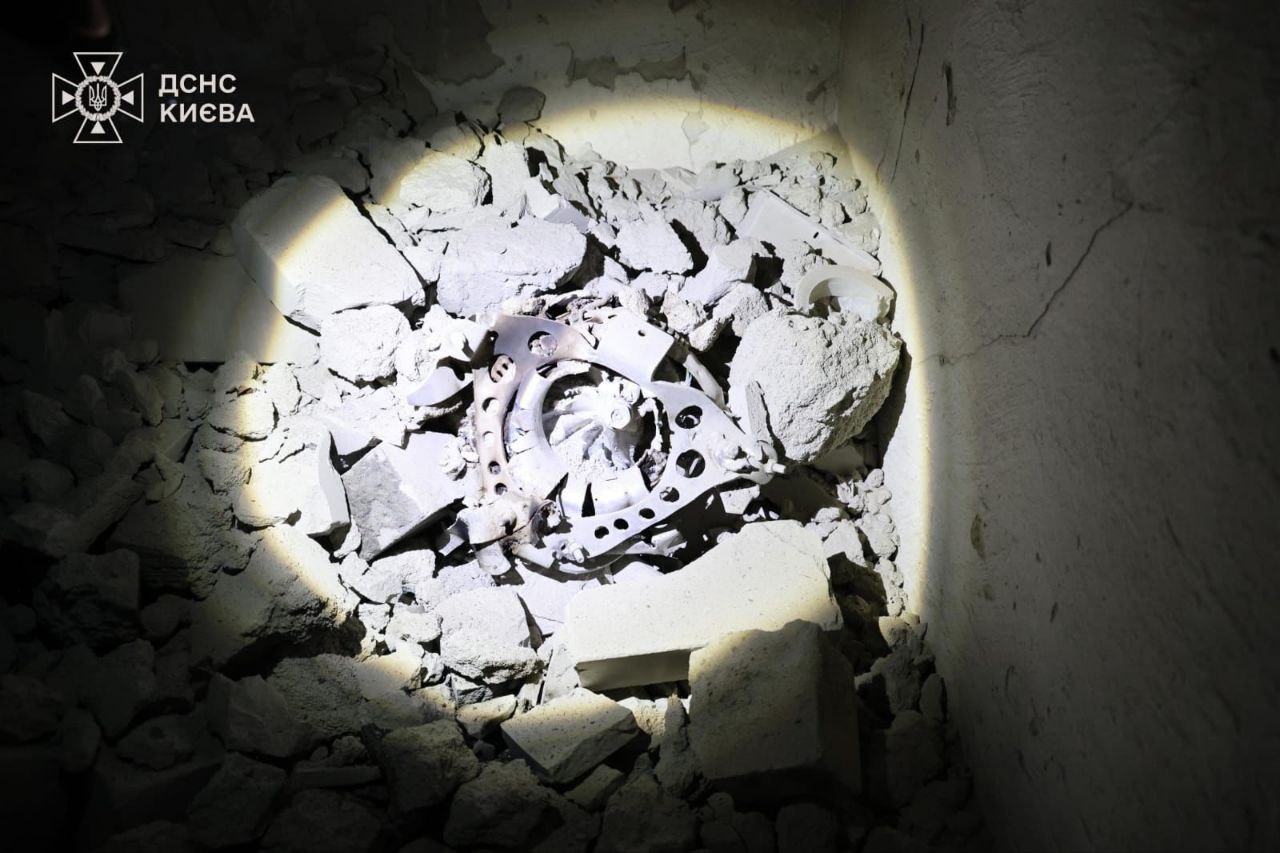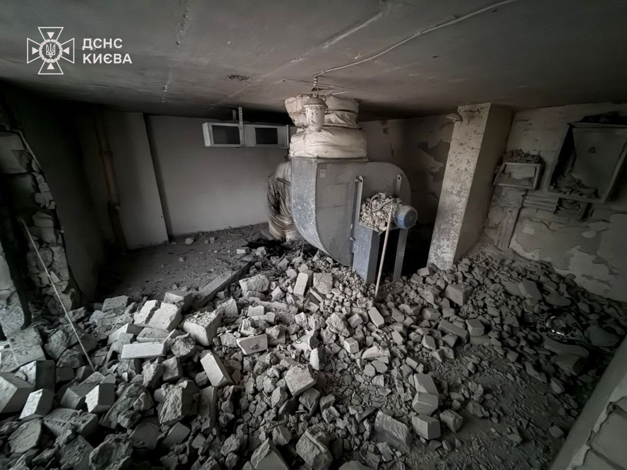 "Київ: у Солом'янському районі уламки російського БПЛА влучили у 15-поверховий житловий будинок. Влучання сталося на рівні технічного поверху. Зафіксовано руйнування стіни на площі близько 4 кв. м без подальшого горіння", - уточнила ДСНС України в Телеграм.