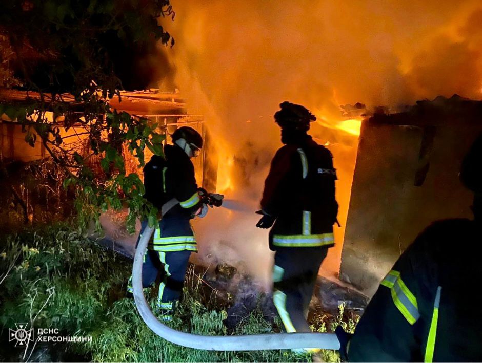 У самому Херсоні горіли нежитлова будівля, гаражні приміщення та автомобіль, господарча споруда.