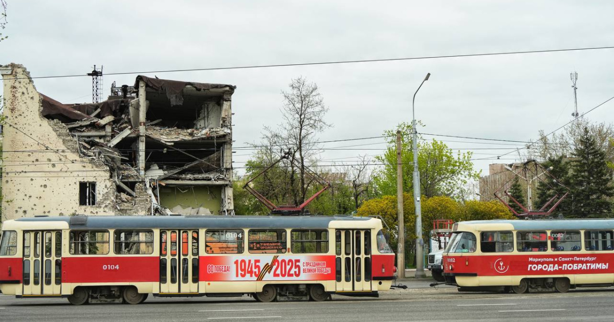 Як доказ «прикрашеності» міста один із Z-пабліків опублікував "символічну" фотографію "великої кількості маріупольських трамваїв», які "проїжджають уздовж адміністративних корпусів заводу "Азовмаш".