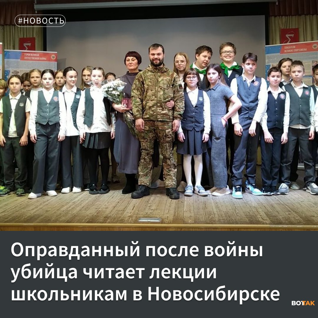 Судимого за вбивство жителя Новосибірська Микиту Сем'янова, помилуваного за участь у війні проти України, місцева влада запрошує до шкіл і ставить дітям за приклад. Про це в соціальних мережах написала його колишня дружина, дочка вбитого її чоловіком чоловіка.