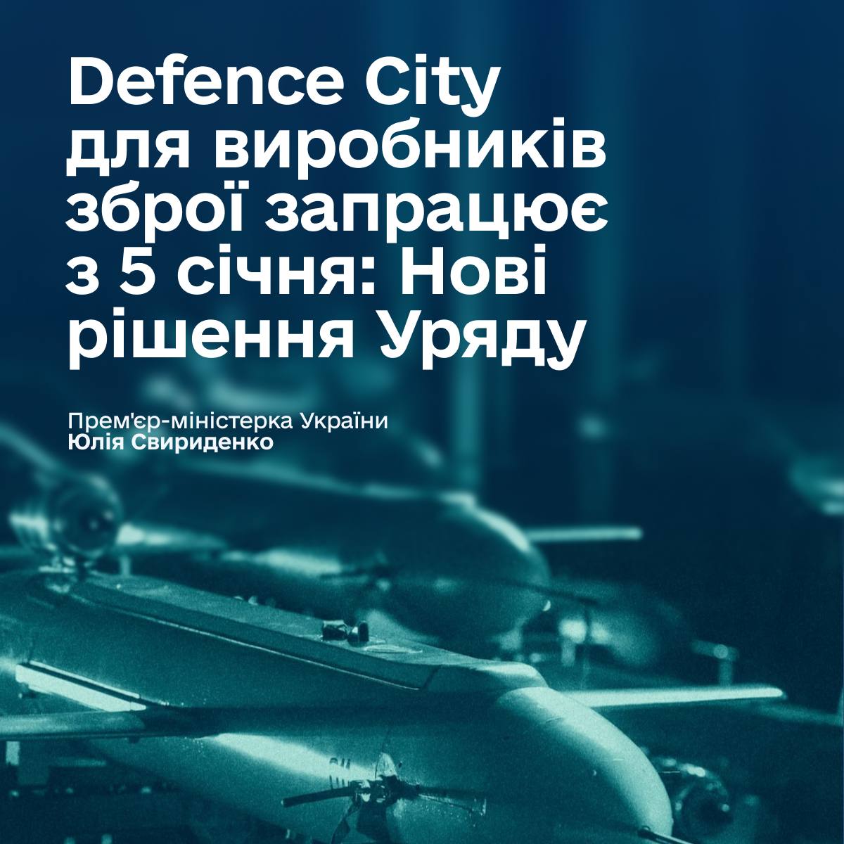 "50% озброєння для нашого Війська вже виробляється в Україні, працюємо над збільшенням наших спроможностей. Саме для цього ми створюємо Defence City - спеціальний правовий режим розвитку оборонної екосистеми", - повідомила очільниця українського Уряду Юлія Свириденко в Телеграм 17 грудня.