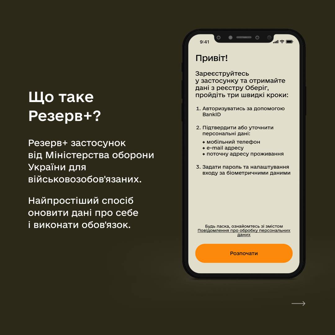 "Це важливо зробити до 16 липня! У разі виникнення питань щодо роботи застосунку, будь ласка, звертайтеся в службу підтримки Резерв+: www.viber.com/reserveplusbot або t.me/ReservePlusBot", - зазначає Міноборони і додає інфографіку, як пройти процес оновлення даних через застосунок Резерв+.