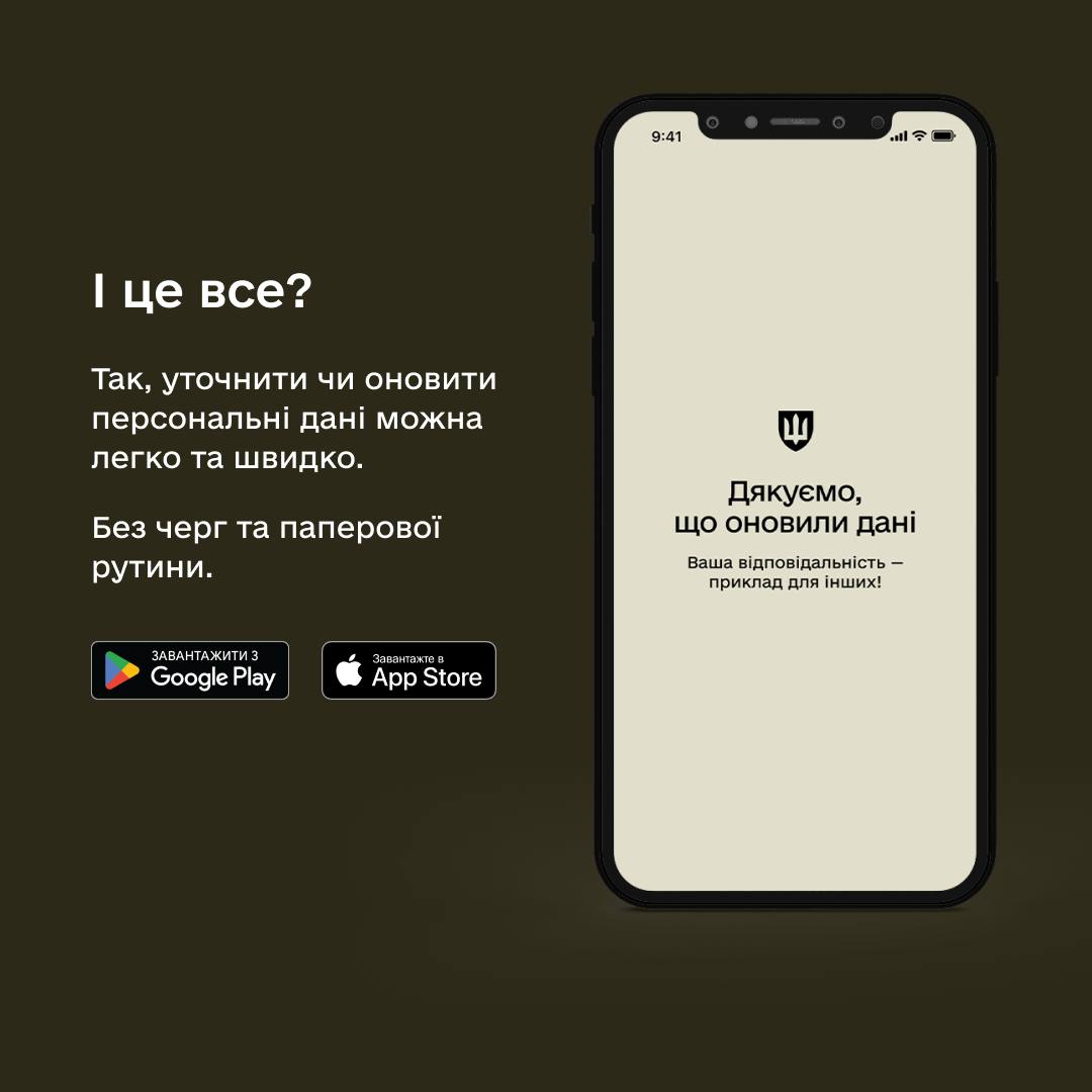 "Відсьогодні вступає в силу закон про мобілізацію. Це означає, що всім військовозобов’язаним, призовникам та резервістам віком від 18 до 60 років необхідно оновити свої дані. А саме - мобільний телефон, фактичну адресу проживання та email (за наявності)", - повідомляє Міноборони.
