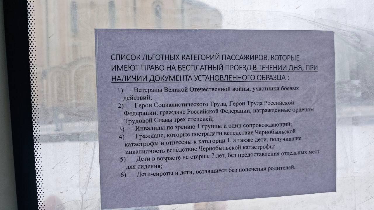 Безкоштовний проїзд для пенсіонерів, судячи з усього, скасують і в міському громадському транспорті. Про це свідчить опубліковане в соціальних мережах оголошення в салоні одного з автобусів – пенсіонери не увійшли до списку пільговиків.