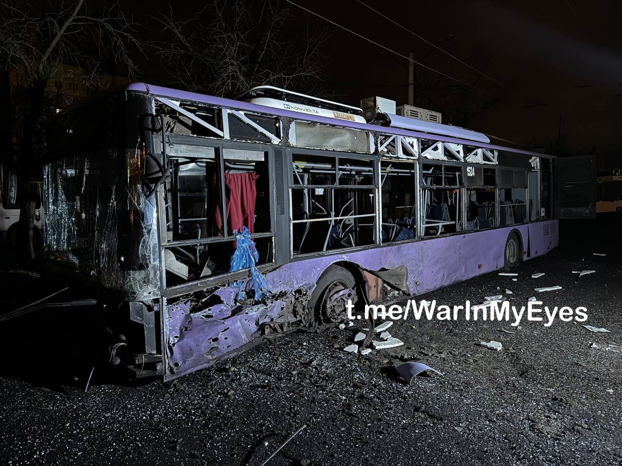У окупованому Донецьку показали наслідки обстрілу тролейбусного депо № 1 у Київському районі міста нібито з РСЗВ "Град". При цьому у місцевих пабліках на фото можна побачити лише один постраждалий тролейбус.