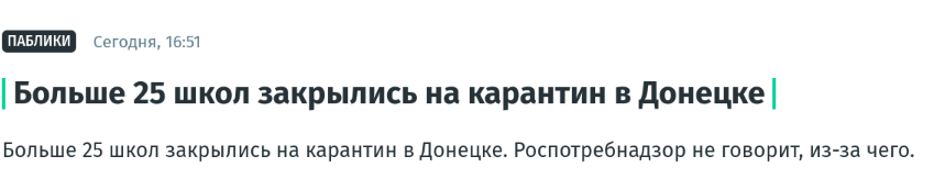 В окупованому Донецьку понад 25 шкіл закрилися на карантин. Причину карантину не повідомляють. Про це 6 лютого пишуть місцеві пропагандисти.
