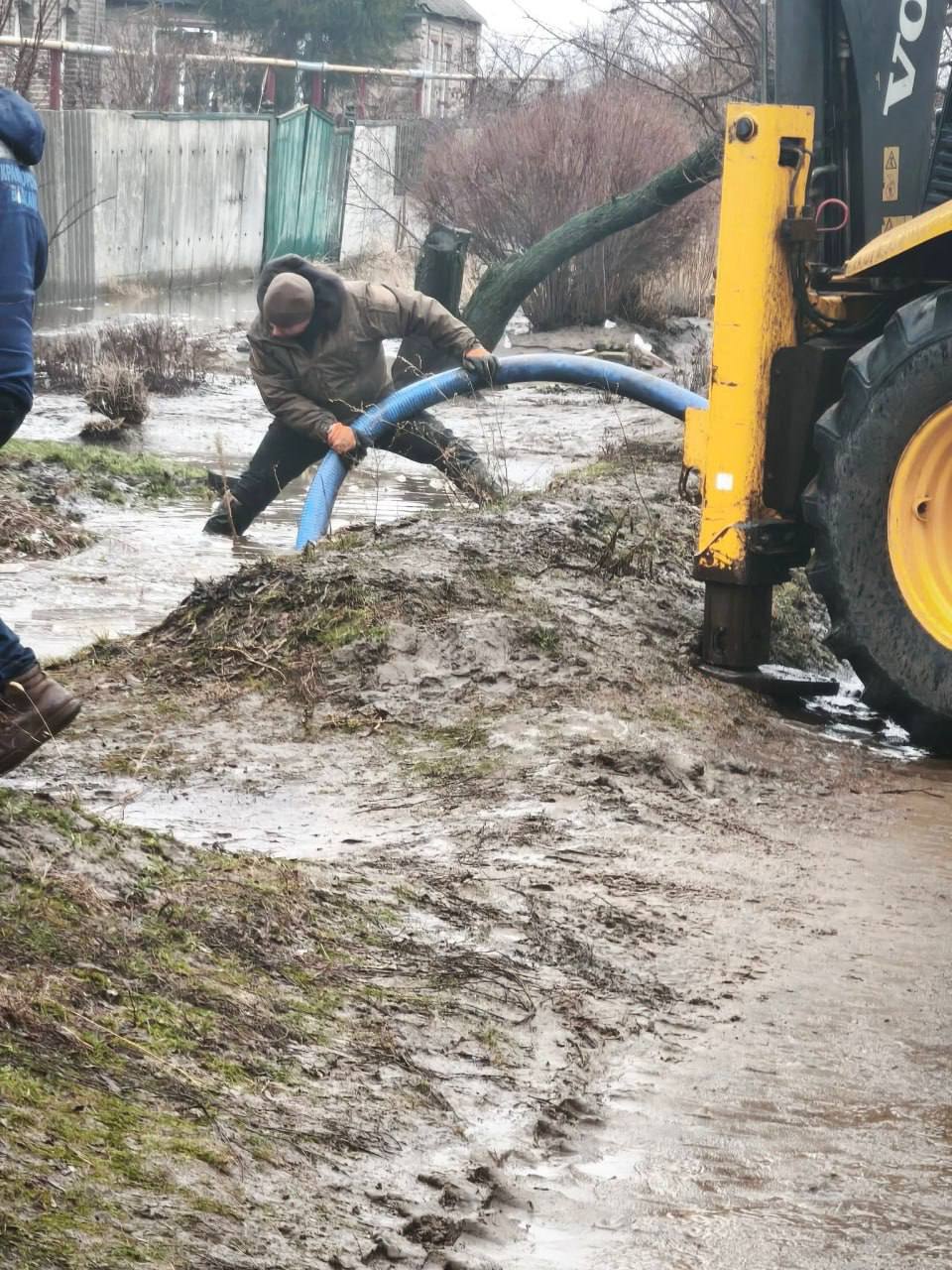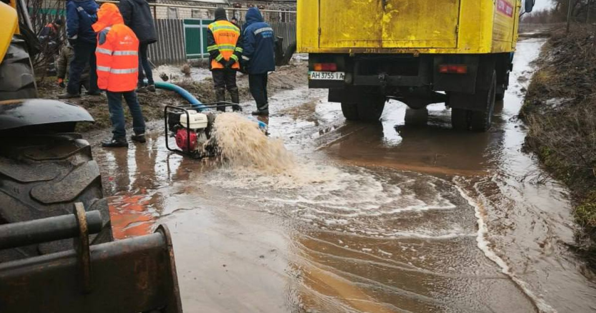 "В одному зі старостинських округів нашої громади комунальні служби виконують відкачування води та забезпечують проїзд транспорту на підтоплених ділянках. Через різке танення снігу та опади рівень води тимчасово підвищився, що ускладнило рух і створило загрозу для дворів та господарств мешканців", - повідомляє Краматорська міська рада 16 лютого.