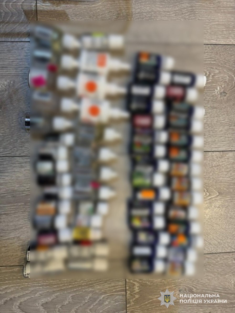 Під час санкціонованих обшуків за місцями проживання та у транспортних засобах зловмисників правоохоронці виявили та вилучили: більше 800 желейок, більше 500 цукерок, шоколадки, близько 300 картриджів та інгаляторів, каністри, банки та інші ємності з психотропними речовинами, 115 банок з екстрактом канабісу, зіп-пакети з псилоцибіновими грибами, психотропні речовини МDMA, LSD та кетамін, засоби та інгредієнти для виготовлення «продукції», засоби для фасування, чорнові записи та інші речові докази їх причетності до протиправної діяльності. Усе вилучене скеровано на експертне дослідження.