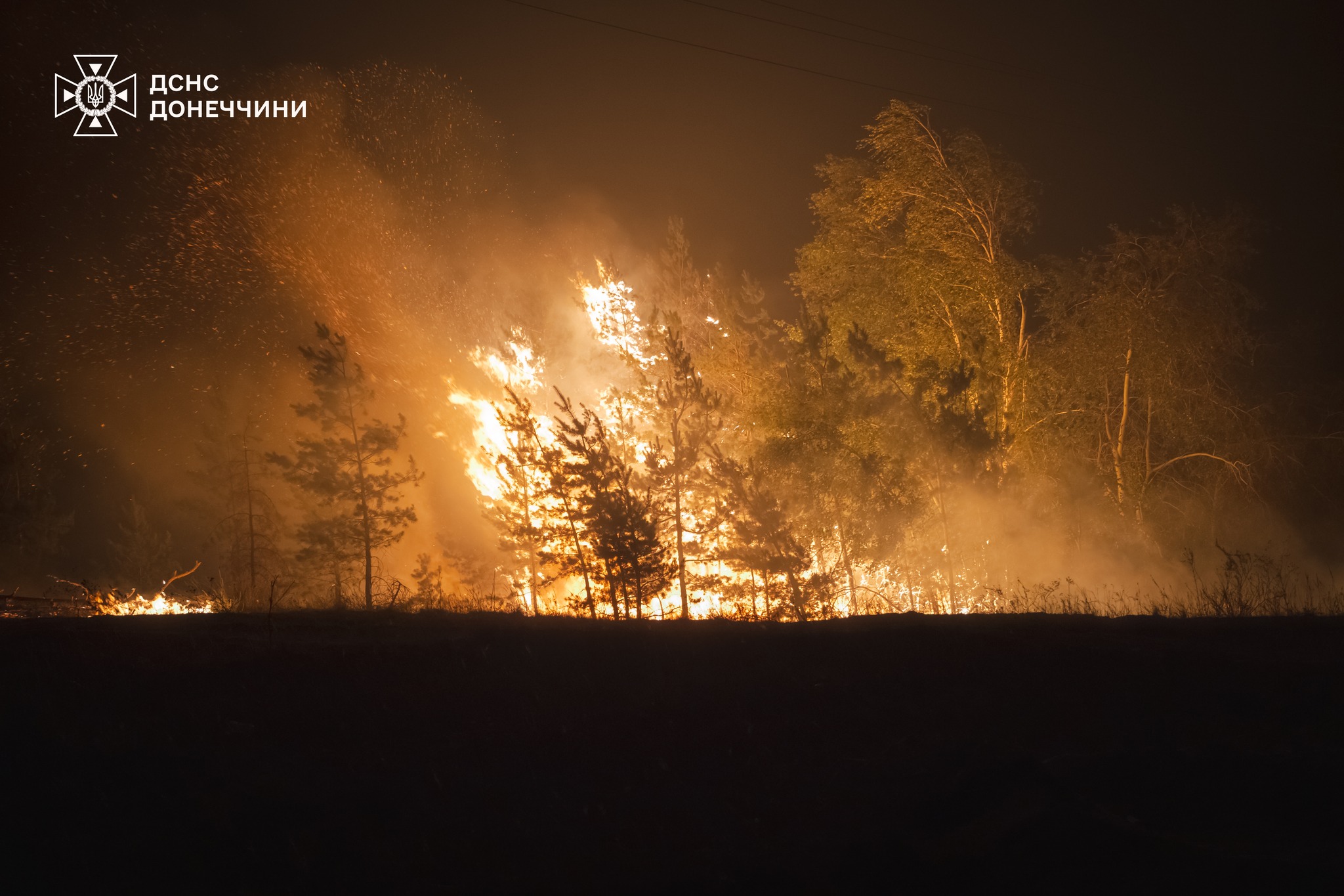 Зазначається, що на місці події залучений особовий склад Донецького та Запорізького гарнізонів, працівники лісового господарства.