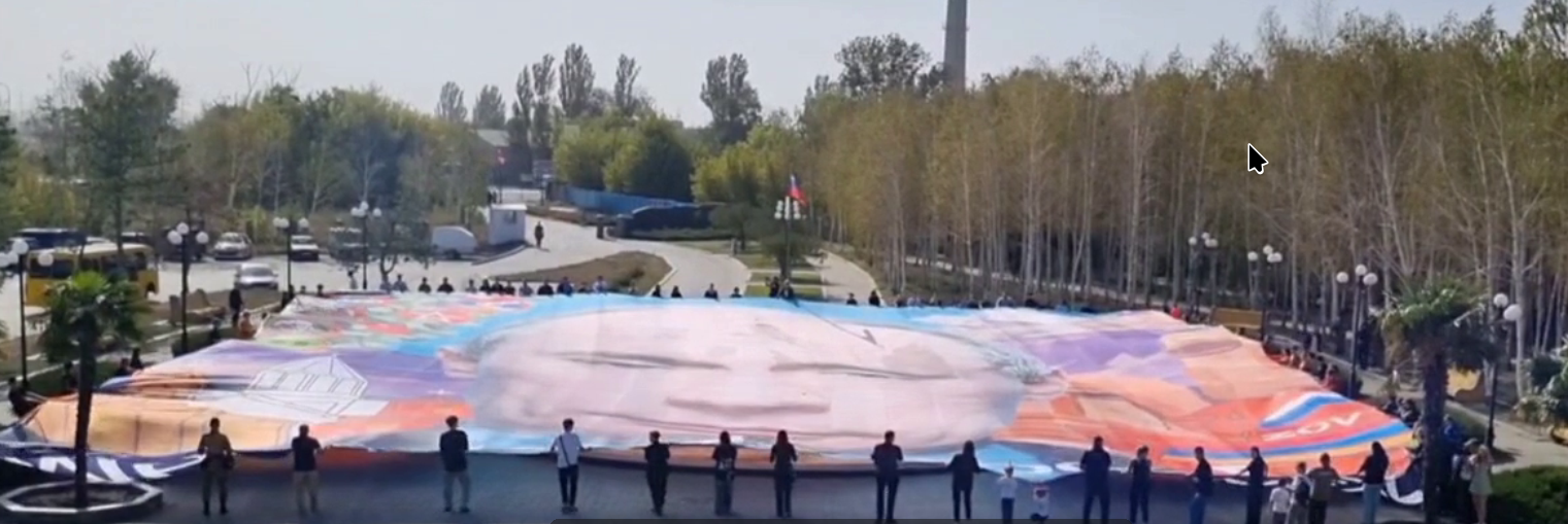 Велетенський банер із зображенням російського диктатора Путіна розгорнули в запорізькому Мелітополі на честь «Дня возз'єднання нових регіонів» із Росією, - повідомляють 30 вересня росЗМІ.