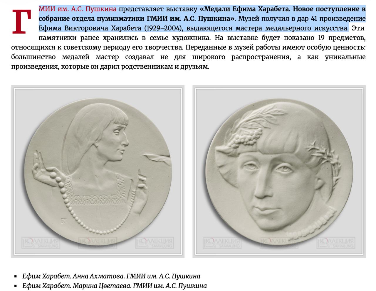 "З огляду на те, що творчість Харабета безпосередньо пов’язана з Маріуполем, а значна частина культурної спадщини міста після окупації фактично зникла з публічного простору, поява таких колекцій у Москві викликає цілком логічні питання. Тому, що частина медалій зберігалась в хранилищах міста та зника одразу після окупації. Зникла, наівть без згади росіян про знахідку, що зазвичай є прямим наслідком мародерства. Питання лише одне - як саме ці роботи опинилися в Росії під час окупації Маріуполя. Безумовно, тут потрібне окреме розслідування", - пише Андрющенко.