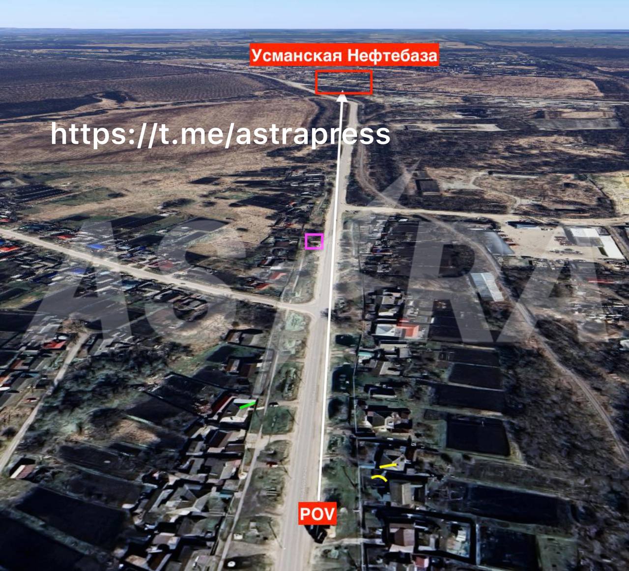 Згідно з аналізом ASTRA кадрів очевидців, які з'явилися в мережі, після атаки загорілася ТОВ «Усманська нафтобаза», розташована в селі Стрілецькі хутори. Так, відео, опубліковане Телеграм-каналом Exilenova+, згідно з аналізом ASTRA, знято з Залізничної вулиці. Відстань від точки зйомки до нафтобази - 1,9 км.