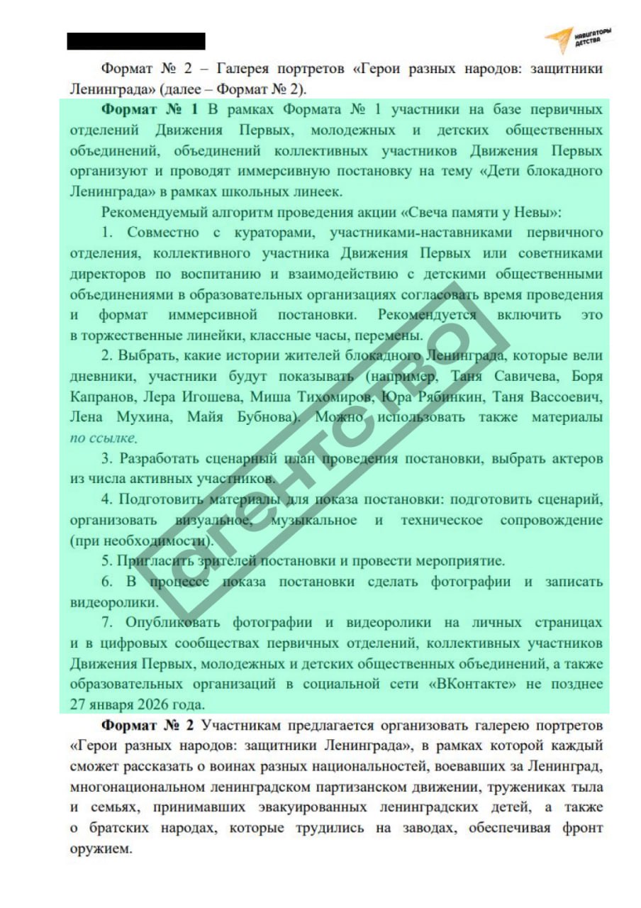 «У вівторок у російських школах завершилися заходи до дня зняття блокади Ленінграда, організовані за методичками з Москви. Школярів переодягали у військову форму та тілогрійки, годували чорним хлібом і змушували роздавати його перехожим. А щонайменше в одному випадку підлітків змусили у 20-градусний мороз носити до школи воду з ополонки, свідчать звіти у “ВКонтакте”», — повідомляє паблік «Агентства. Новини» 27 січня.