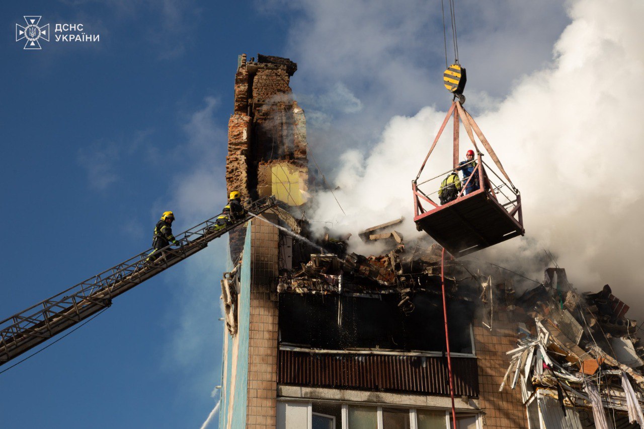 "Аварійно-рятувальні роботи тривають. Залучені понад 160 рятувальників, зокрема верхолази, кінологи, спецпідрозділ «Дельта» та близько 45 одиниць техніки ДСНС, в тому числі роботизовані системи. Сапери обстежили територію", - розповіди надзвичаники.